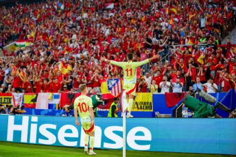 En el minuto 18, Georgia tuvo la oportunidad de contraatacar rápidamente. Kakabadze envió un centro preciso desde el lado derecho, pero un despeje de Lenormand frente a la portería marcó accidentalmente un gol en propia puerta. En el minuto 39, Rodri tomó el balón y disparó, y España empató 1-1. En el minuto 50, Yamal ejecutó un tiro libre en la zona de ataque y fue detenido por el portero Fabián, que estaba agarrando el punto frente a la portería, remató de cabeza y anotó, España 2-1 Georgia. . En el minuto 75, Fabián observó con tranquilidad y luego envió un pase largo muy preciso. Nico tomó el balón y de un solo disparo anotó el 3-1. En el minuto 84, Georgia no estaba muy lejos del asedio. España tomó el balón y organizó un ataque en el lugar. Olmo dribló maravillosamente el balón y disparó a la red desde larga distancia. Con los aplausos de los aficionados vestidos con camisetas España Euro 2024, al final, España venció a Georgia 4-1 y avanzó a la siguiente ronda.