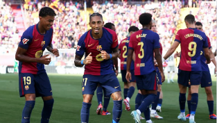 En el minuto 20, Kubasi envió un pase largo, Rafinha detuvo el balón y anotó, dando al Barcelona una ventaja de 1-0. En el minuto 24, Yamal hizo un pase largo y Lewandowski anotó el 2-0. En los minutos 45 y 2, cuando un saque de esquina provocó el caos, Conde logró marcar y el Barcelona se adelantó 3-0. En el minuto 64, Lewandowski asistió y Rafinha anotó dos veces, 4-0. En el minuto 72, Yamal envió un pase en profundidad y Rafinha anotó un solo gol, realizando un triplete, 5-0, en el minuto 82, Olmo. dribló el balón hacia el área penal, encaró al defensor y disparó al ángulo lejano, 6-0. En el minuto 85, Rafinha pasó el balón y Ferran Torres anotó 7-0. ¡En este partido, Rafinha, vistiendo la camisetas de fútbol, está experimentando una gran explosión en su forma competitiva! ¡Marcó 3 goles y fue elegido mejor jugador del partido!